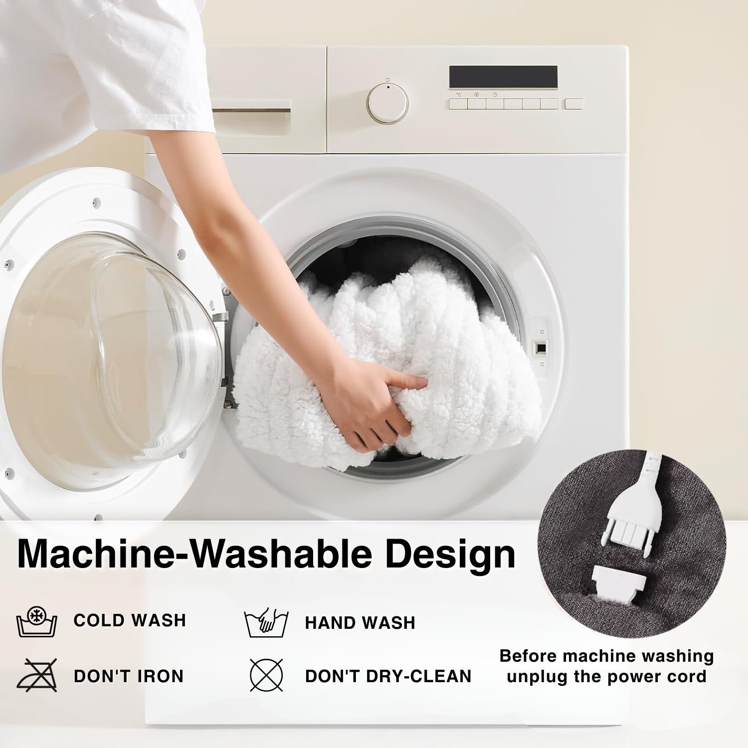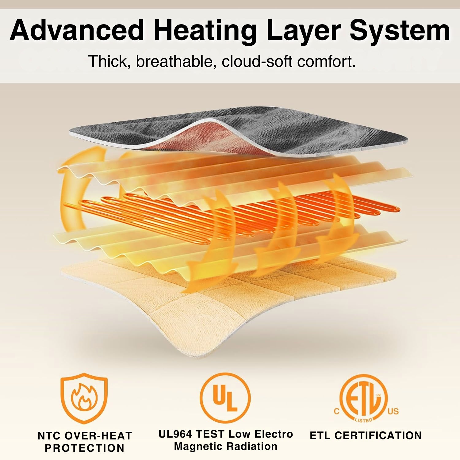 The plush fabric helps your body settle, and the energy saving system keeps you warm without touching the heater.